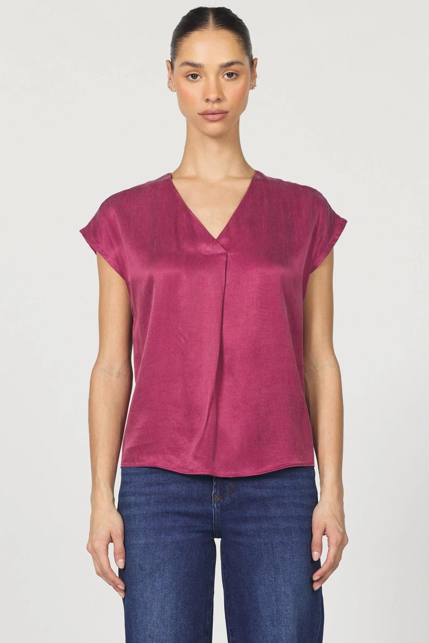 The Kristen Blouse by Dear John has a relaxed fit V-neck design in a stunning tibetan red color. Perfect for any occasion, this blouse combines elegance with comfort. Its lightweight material drapes beautifully, offering a style that works effortlessly from day to night. Ideal for pairing with both casual and formal outfits, it's your go-to choice for versatile wardrobe styling.